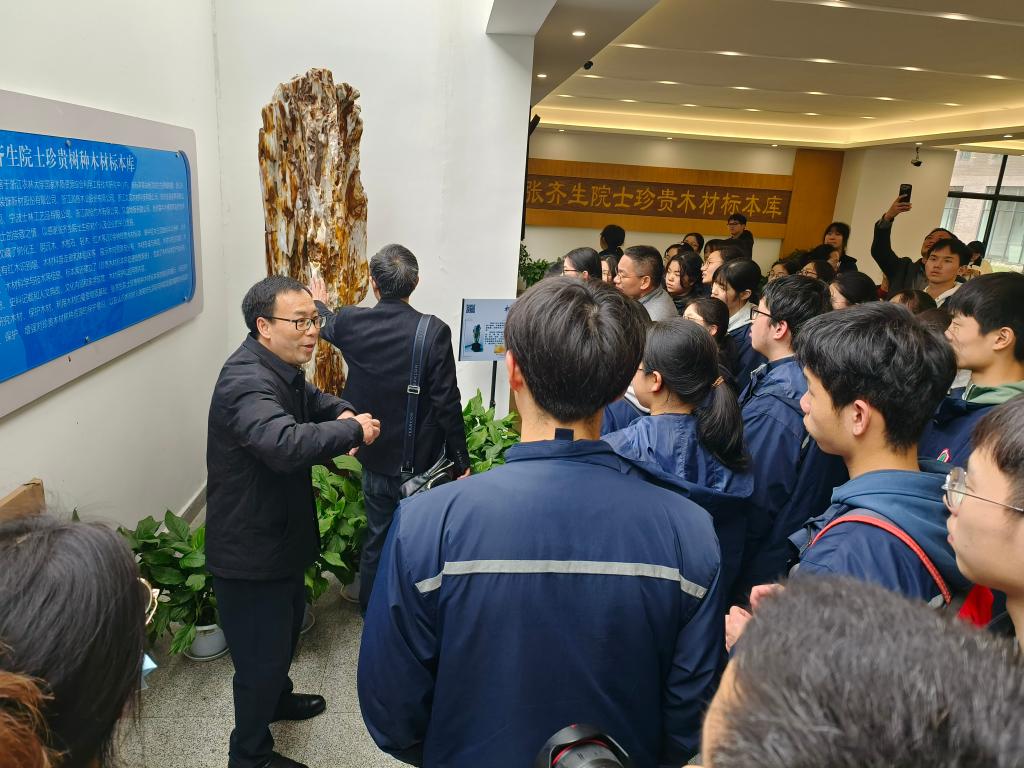 会上,学院学生工作负责人向德清一中师生解读了学校招生政策及录取情况,就化材学院专业建设、人才培养、科研平台与成果、文化特色等方面做详细介绍。各专业负责人及教师与到场师生做了互动交流,热忱欢迎德清一中优秀学子报考我院。在参观国家工程中心、张院士珍贵木材标本库和欧派助业班时,俞友明、林秀珍两位老师分别为来访师生演示了精密仪器使用,展示了最新科研和设计成果,来访师生纷纷驻足观看。