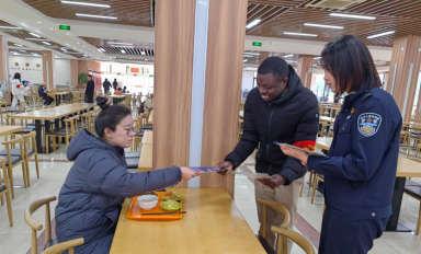 为助力亚运安保,携手共建平安共同体,国教学院与锦北派出所联合组建了留学生义警队,来自俄罗斯、赤道几内亚、赞比亚、吉尔吉斯斯坦等国10名留学生志愿者成为义警队队员,并与锦北派出所民警共同在校园内进行了反诈宣传。