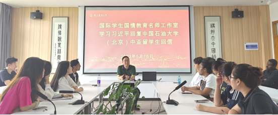 近日,国际学生国情教育名师工作室组织来自吉尔吉斯斯坦、哈萨克斯坦、越南、苏丹、赤道几内亚等国留学生代表召开学习座谈会,专题学习了习近平总书记5月15日给中国石油大学(北京)的中亚留学生们的回信精神。