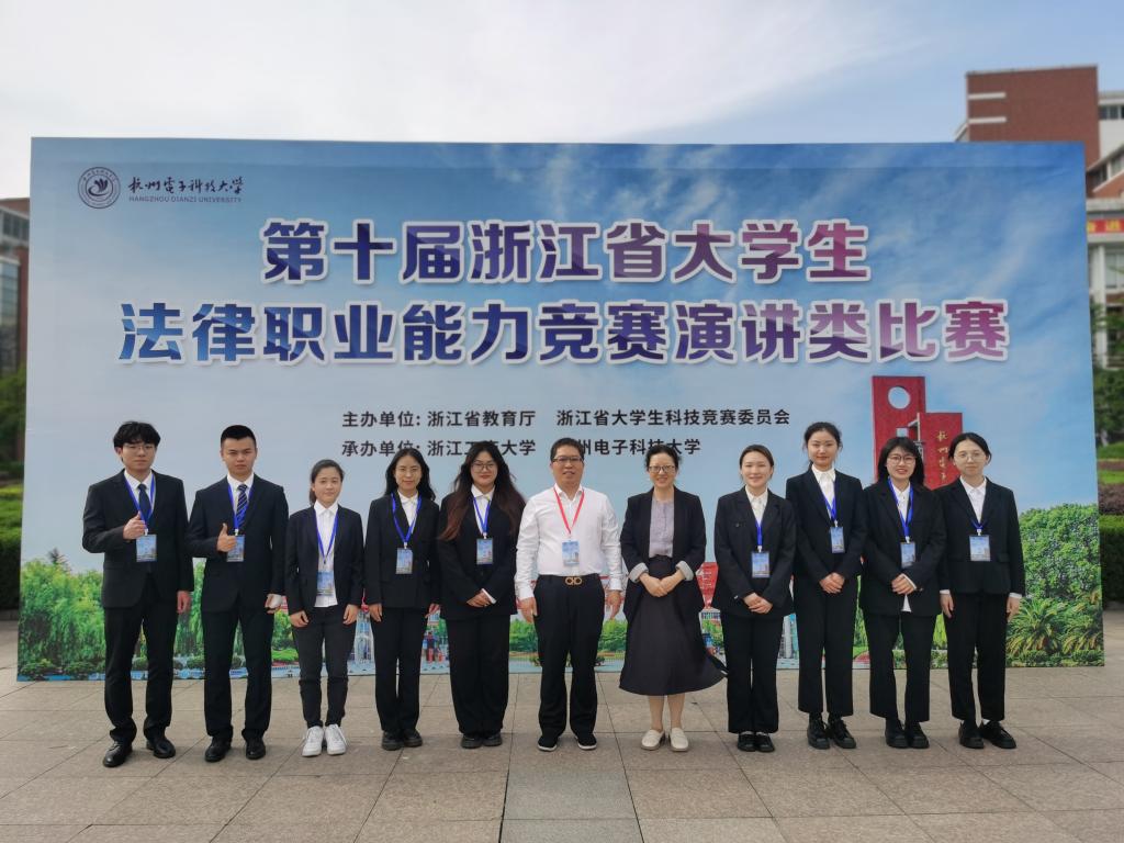 5月13-14日,文法学院法学教师徐金锋、何菲带领2020-2022级的9位法学本科生,于杭州电子科技大学参加第十届浙江省大学生法律职业能力竞赛演讲类比赛的决赛。全省共有32所院校的411名选手参赛,共推选出30所院校的153名选手进入决赛。决赛采用30分钟无参考资料条件下自主准备、4分钟即兴演讲的比赛模式,对选手思考问题的深度与广度、架构内容的逻辑性、即兴表达水平都有较高的要求。