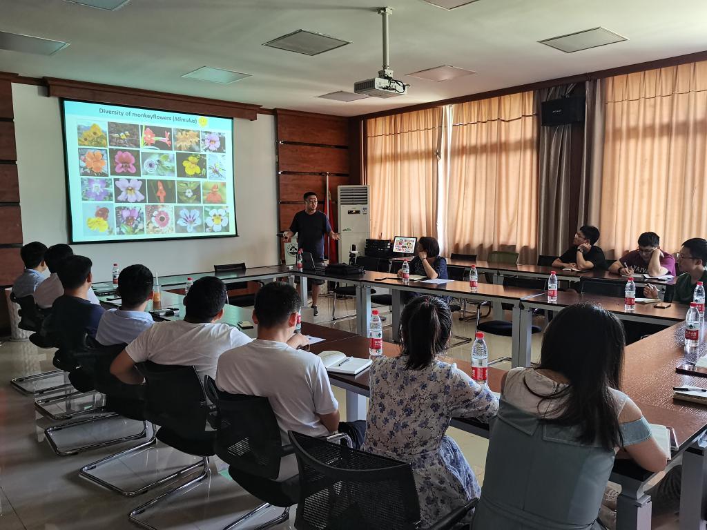 袁耀武副教授用丰富的图片资料、通俗易懂的语言,讲述了他以猴面花(monkeyflowers)为模式植物,综合利用分子遗传学、发育生物学、生物化学、计算机模型等研究手段,探究植物物种与环境适应性形成过程中形态演化和发育的分子基础的故事。整个报告会在轻松、愉悦的气氛中进行,深入浅出,引人入胜。