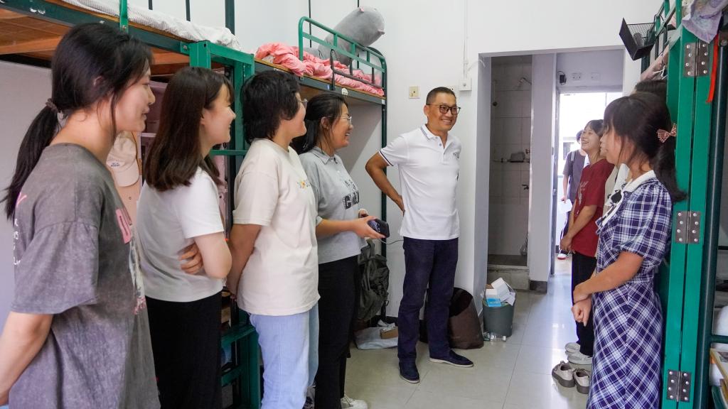 9月16日,环资院、碳中和学院院长冯华军、党委书记侯锡铭及党政领导班子、专业负责人、辅导员、班主任深入2023级新生寝室走访慰问,为新生送上问候关怀。