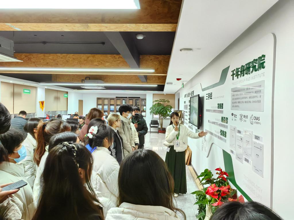 千年舟集团是一家专注于人造板、地板、家具等产品生产与销售的企业,在市场上享有较高的知名度和竞争力。化材学院一行在陆铜华的带领下,对千年舟集团的智木艺墅、集团研究院、检测分析中心和柏菲伦定制家居展厅进行了参观。集团人力资源部、党群办和研究院等部门的负责人向师生们介绍了集团的发展历程、全屋定制理念、人才生态链、售后服务体系等。