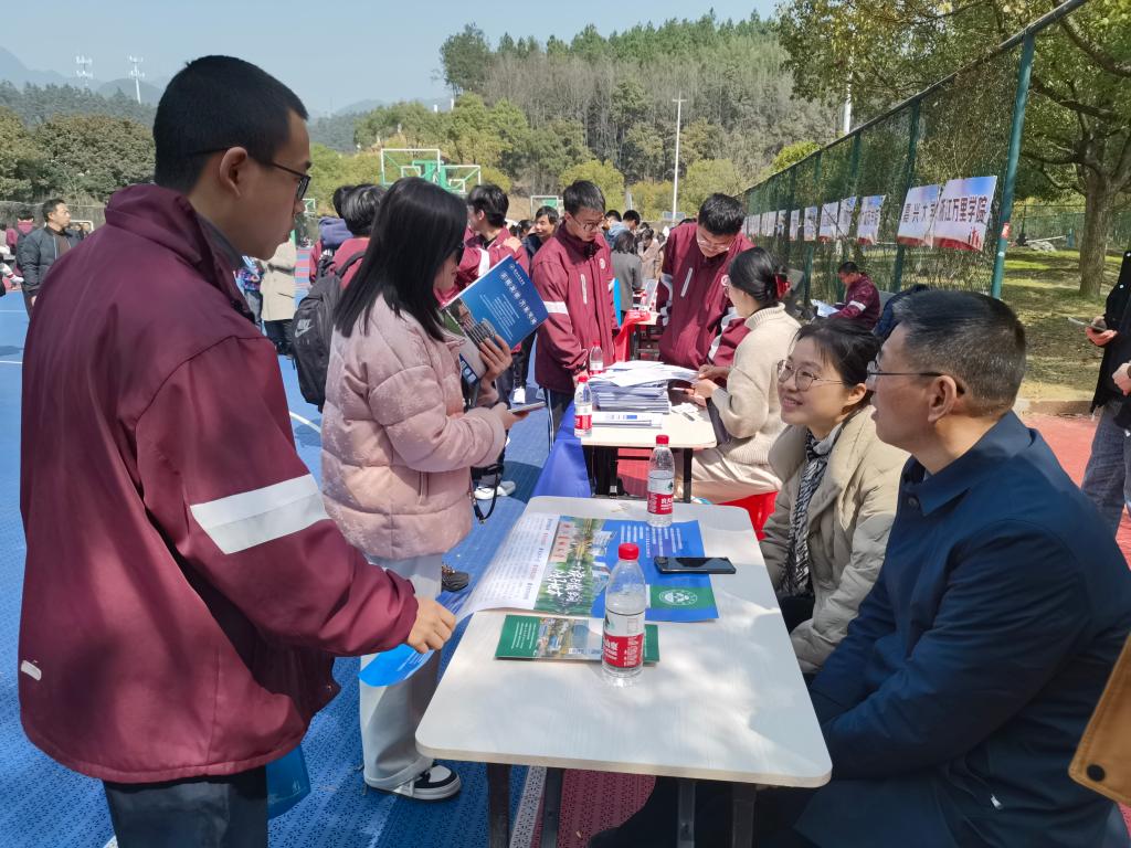 3月6日,环资院、碳中和学院前往丽水外国语实验学校开展2024年“三位一体”招生咨询活动。学院相关教师与师生家长面对面交流,为他们解答疑惑,重点介绍我校办学实力、专业特色、招生政策等情况,对有关专业选择、报考门槛、就业前景等问题进行了耐心细致的解答,同时以发放学校文创作品为契机让考生真切感受到学校校园文化的魅力,获得一致好评。招生现场共发放招生宣传资料300份,此次活动不仅成为连接丽水学子与浙江农林大学的纽带,还展现了学院的专业特色与优势。