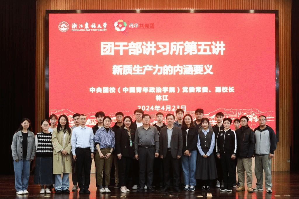 为深入学习宣传贯彻党的二十大精神和习近平总书记关于发展新质生产力的重要论述,4月23日晚,团干部讲习所第五讲举行。中央团校(中国青年政治学院)党委常委、副校长(副院长)林江教授作题为《新质生产力的内涵要义》的专题讲座。校党委副书记施美红出席讲座。讲座由校党委委员、宣传部部长、教工部部长倪建均主持。