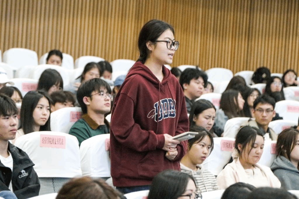 讲座深入浅出、旁征博引,使得在座的团干部对新质生产力的内涵要义有了更加深刻的理解和认识。讲座过程中,参会师生积极交流互动,就“如何运用所学的专业知识发展绿色生产力”“团支部如何为青年提供发展新质生产力的广阔平台”“如何具体运用人工新型智能技术点燃青年们的‘创新引擎’”等问题进行提问。林江一一耐心解答并鼓励团学干部引领青年在专业领域建功立业,激发青年掌握关键核心技术,拥抱未来产业,为发展新质生产力贡献青春力量。