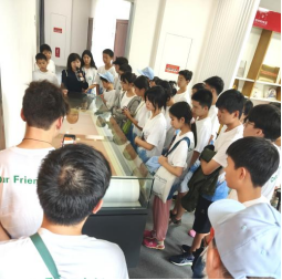 在参观陈望道故居和望道展览馆期间,义乌工商学院原副院长何少庆教授为美籍青少年访华团详细介绍了陈望道的生平事迹。营员们被陈列在望道展览馆入口处的、由浙江农林大学国际学生中国文化导师汪晓亮先生捐赠的《共产党宣言》百米书法长卷深深吸引。