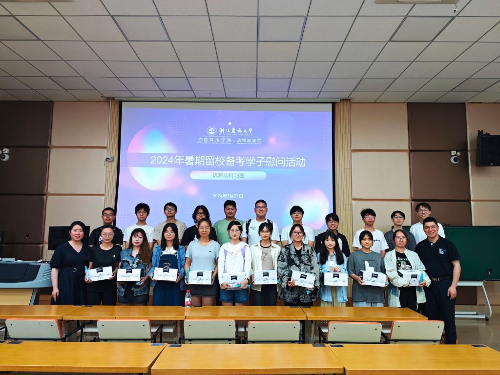 7月21日下午,动科动医学院开展暑期留校备考学子慰问活动。校党委委员、学院院长宋厚辉,学院党委书记魏玲玲,学生工作负责人及辅导员参加活动,为备考学子们送去夏日清凉与学院关怀。