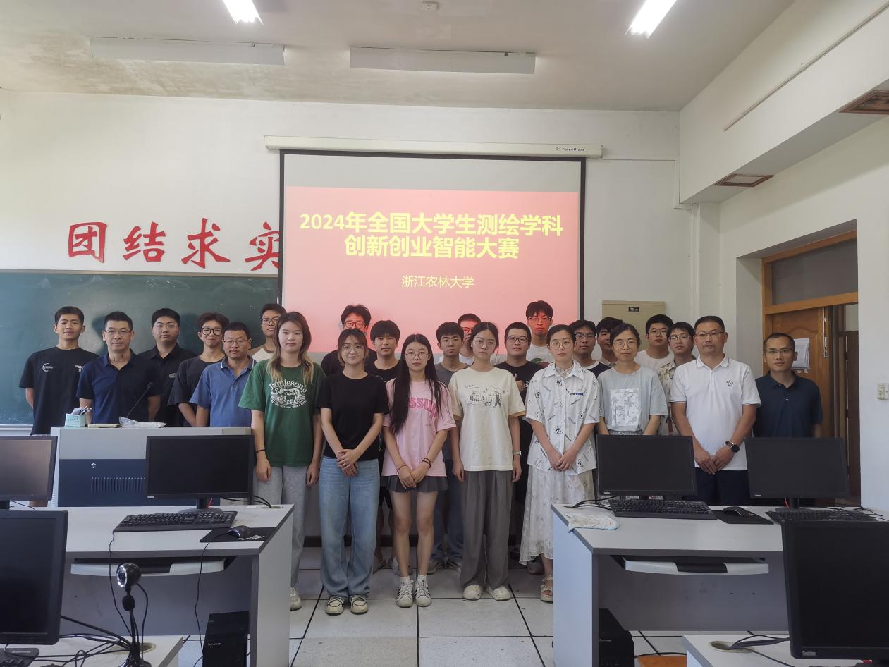 环资院、碳中和学院高度重视学科竞赛,优化竞赛指导体系。6月初主办校赛,遴选优秀学生参加国赛;7月初,组建12名指导教师和20名参赛学生的浙农林大测绘学科竞赛集训队伍。学院选拔经验丰富、责任心强的老师担任指导老师,并邀请浙江南方测绘科技公司负责人和技术人员现场辅导答疑和在线提供技术支持,学院相关负责人还多次视察竞赛集训室和慰问参赛同学。