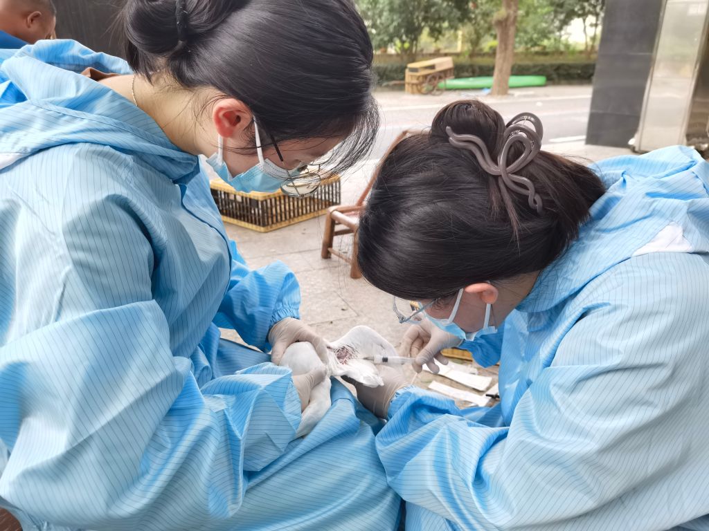 学生们通过本次调研和采样,掌握了现场流行病学调查方法、鸽咽喉拭子采集、鸽肛门拭子采集、鸽翅静脉采血等兽医临床技术,提升了自身的实践能力。