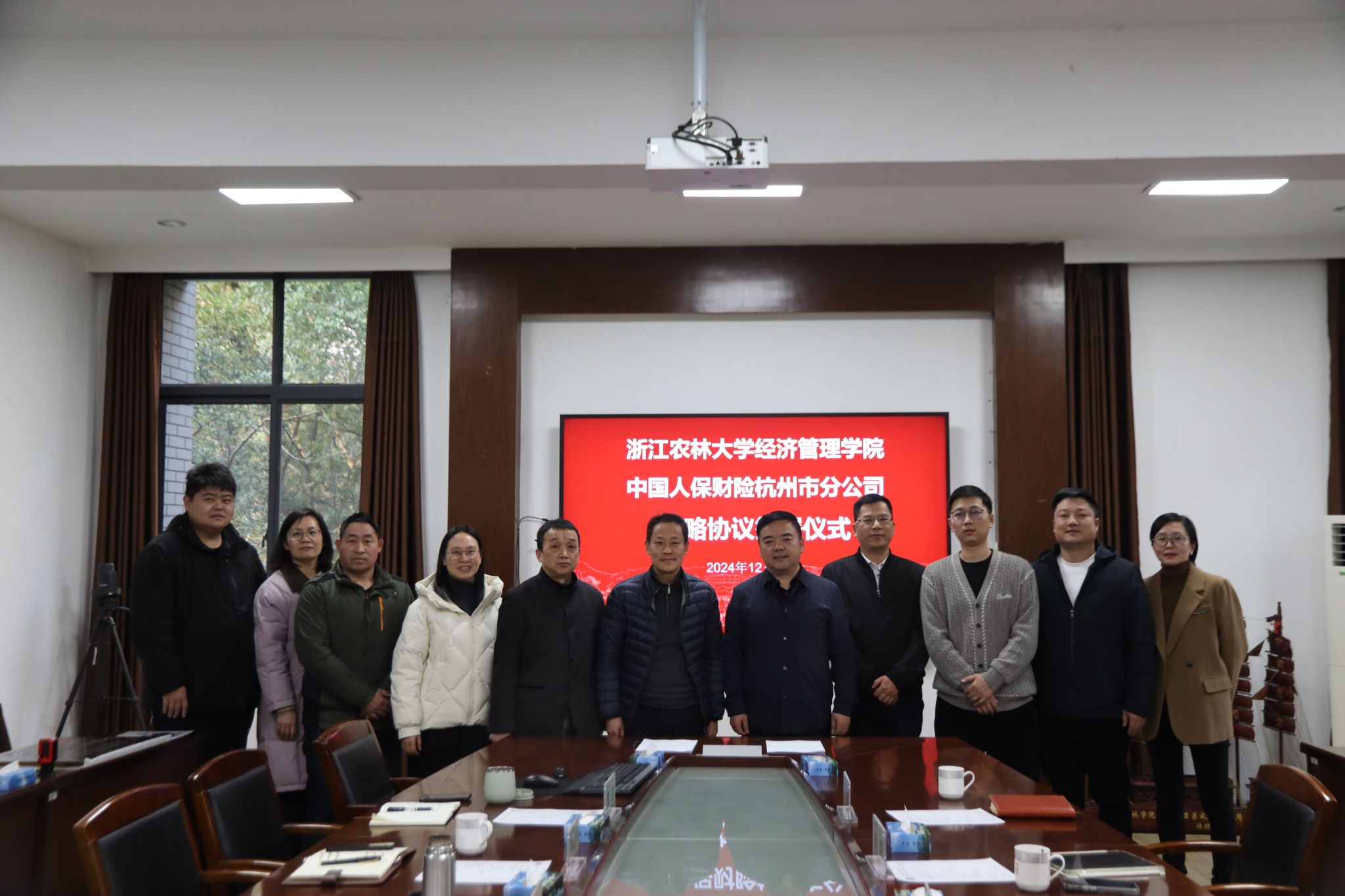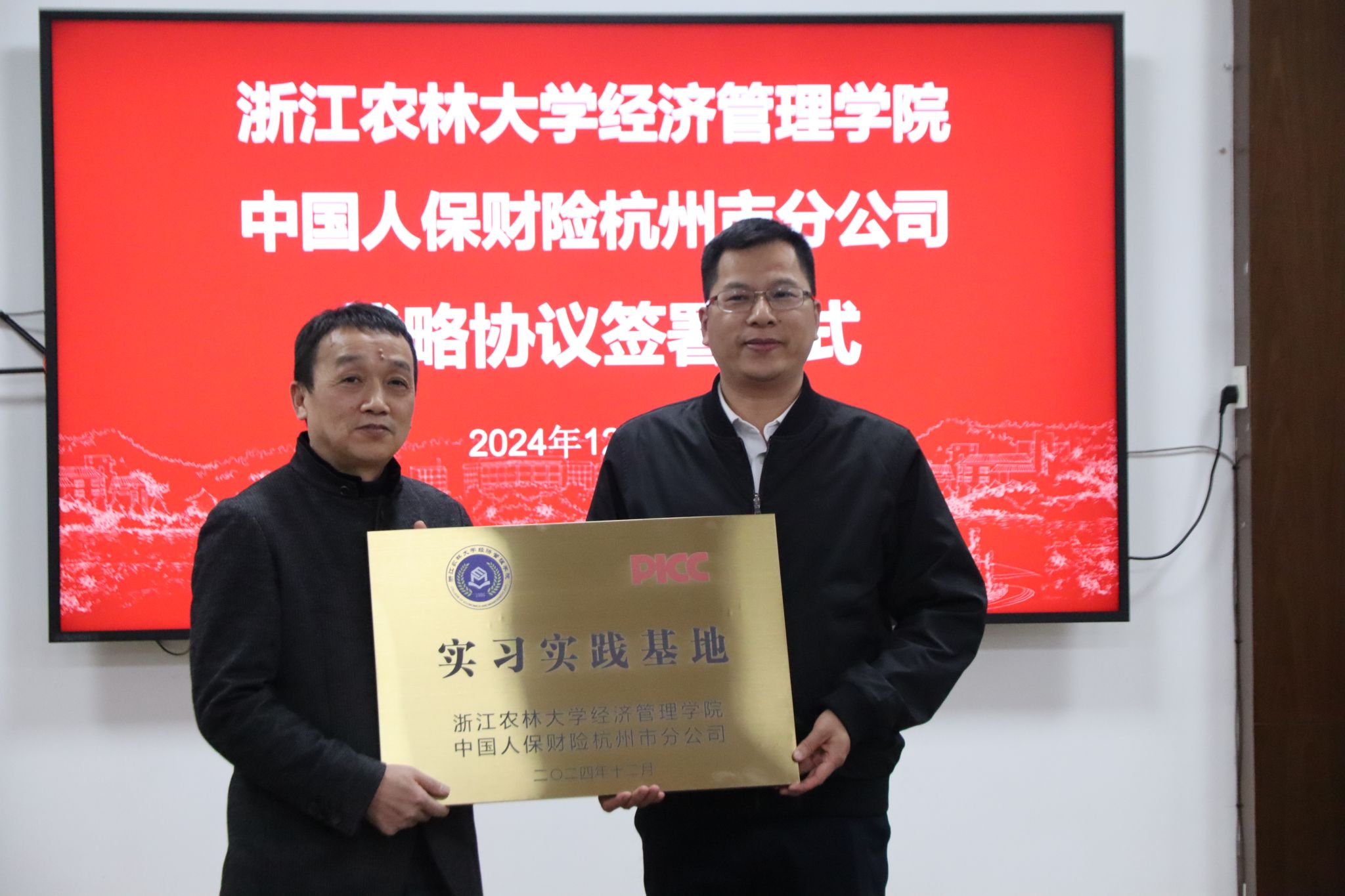 12月18日下午,经管学院与中国人保财险杭州市分公司战略合作协议签约暨实习实践基地授牌仪式在西大楼208会议室举行。中国人保财险杭州市分公司副总经理詹春林、经管学院党委书记陈劲松,双方团委、行政人事以及学生办等相关人员参加了仪式。