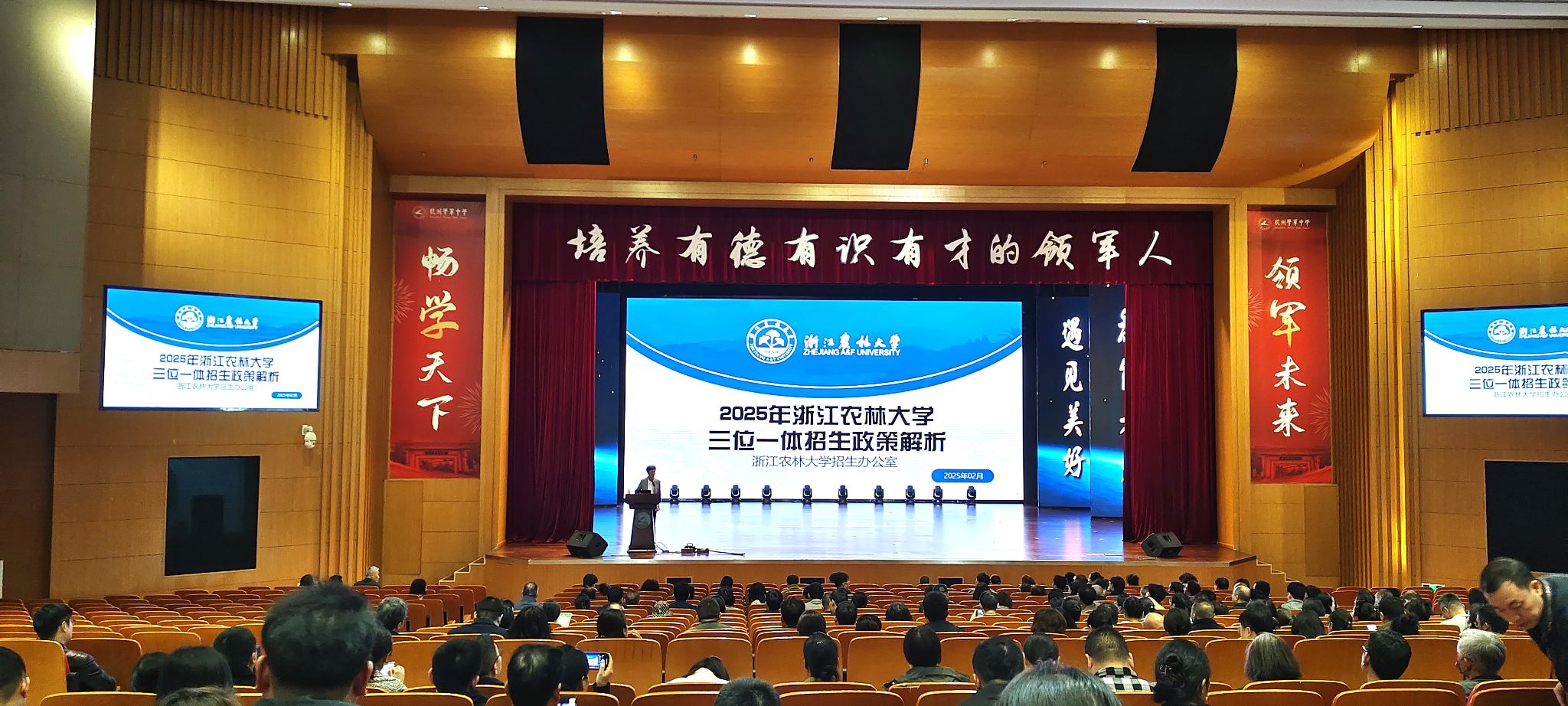 3月2日,农学院党委书记梁卫玲带队前往杭州市学军中学,为400余名高三学生家长作以“浙江农林大学2025年三位一体政策解读”为主题的讲座报告。梁卫玲从学校概况、招生政策、注意事项、咨询方式四个方面,对学校2025年三位一体政策进行了详细解读,重点讲解了学校三位一体招生计划、报考条件、招生进程、材料准备、志愿填报等,以及招生政策的变化和注意事项,并提供了学校招生咨询联系方式,为同学们的报考提供最大便利。讲座结束后,家长围绕历年录取分数、学科专业优势、就业情况、师资、转专业等问题展开咨询,学院招生工作人员给予了详细耐心的专业解答。