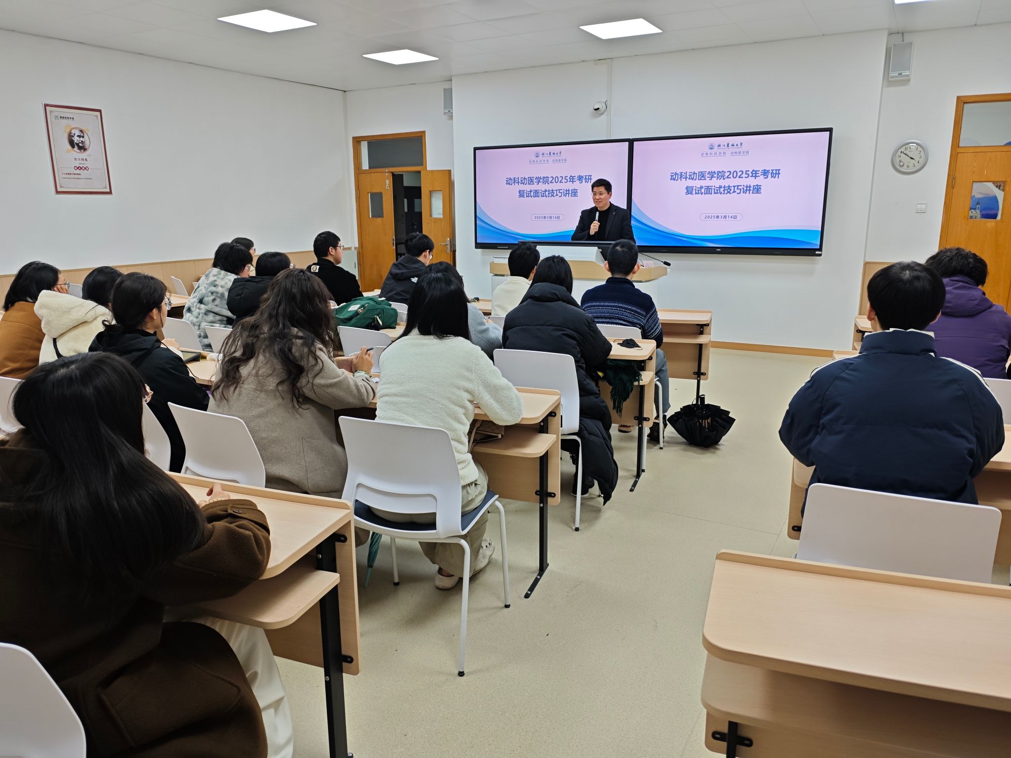 3月14日,动科动医学院在学三302召开了考研复试面试技巧辅导会。本次辅导会由动科动医学院相关负责人进行指导,毕业班辅导员和20余名考研学生参加本次培训会。