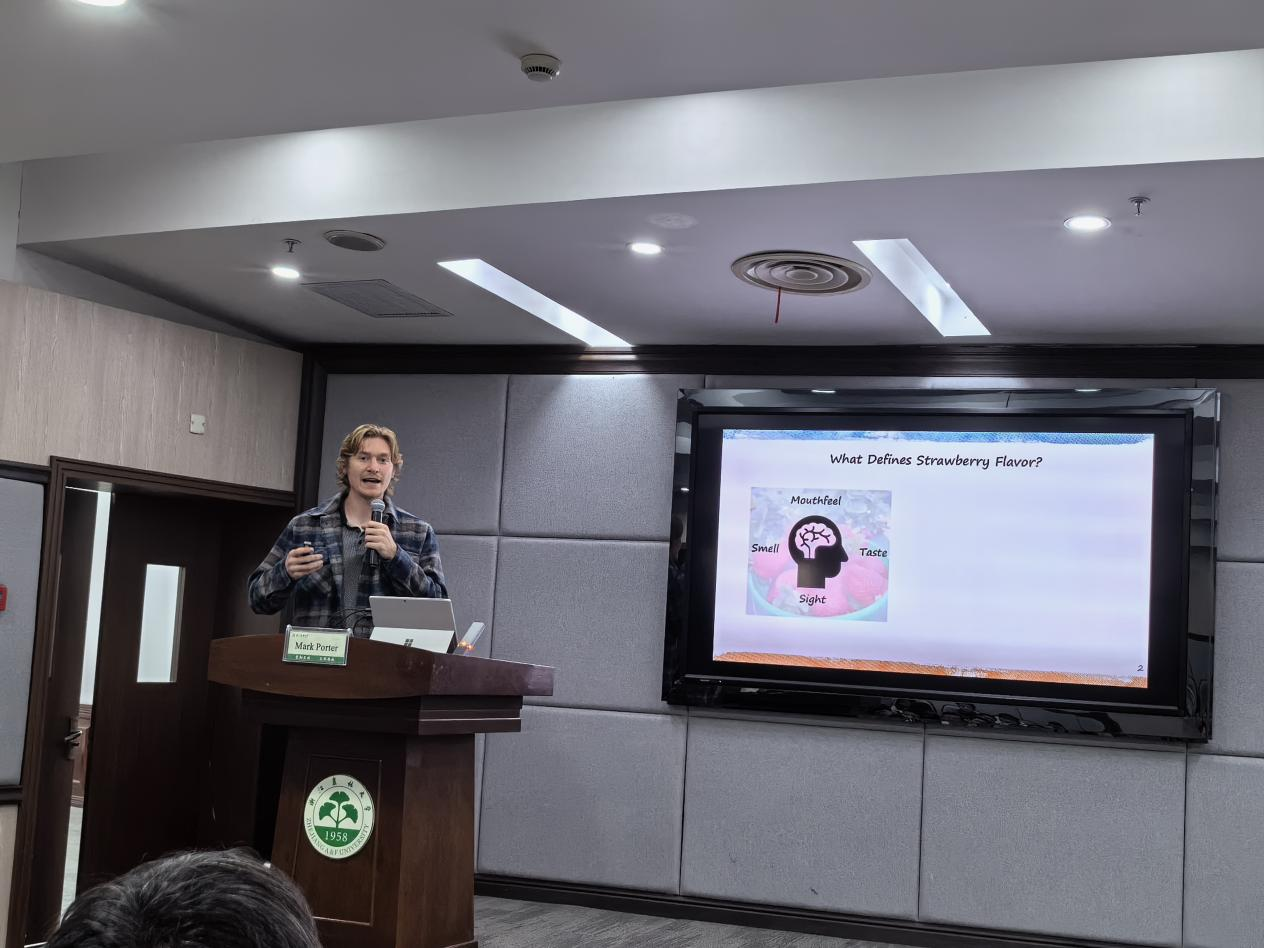 Mark Porter博士以“Gene Discovery and Genomic Prediction for improved Strawberry Flavor”为题,介绍了在草莓风味研究上的进展;Kaitlyn Vandracek博士以“Identifying the Genetic Mechanisms for Manipulation of Strawberry (Fragaria ×ananassa) Runner Production”为题,介绍了草莓匍匐茎产生的机制研究;沈锴博士以“A Comparative Study of Precision 3D Reconstruction of Strawberry Plants for Non-Destructive Biomass Prediction”为题,介绍了通过3D影像精确测定草莓生物量的方法。