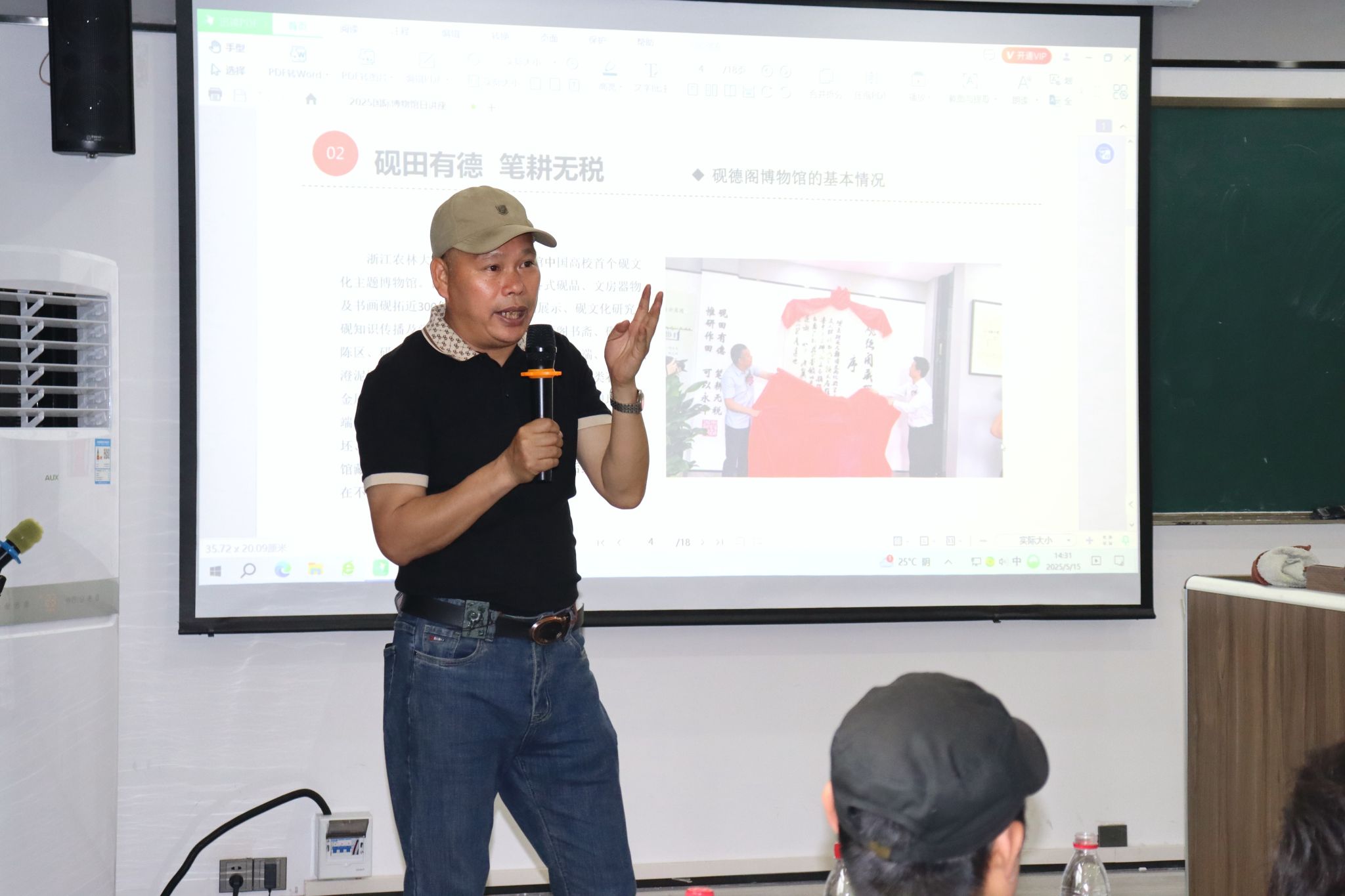 近日,由校团委、艺术学院主办,艺术学院团委、基础美术部和校书法协会协办的农林有“艺”思——博物馆日活动,在砚德阁藏研博物馆举办。艺术学院党委书记黄晓芳出席活动并致辞,活动特邀杰出校友、砚德阁藏研博物馆捐建者叶剑鸿以“古砚书香 博物传薪”为主题作专题讲座。