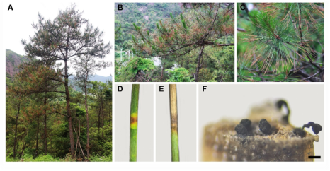 研究共鉴定出10个拟盘多毛孢属物种,命名6个新物种(Pes. jiangmenensis、Pes. massoniana、Pes. ningboensis、Pes. shanweiensis、Pes. thunbergii、Pes. wenzhouensis)。该研究在国际上首次系统阐明我国不同气候地区松赤枯病病原菌拟盘多毛孢属真菌的物种多样性,完善了全球Pestalotiopsis物种资源库。