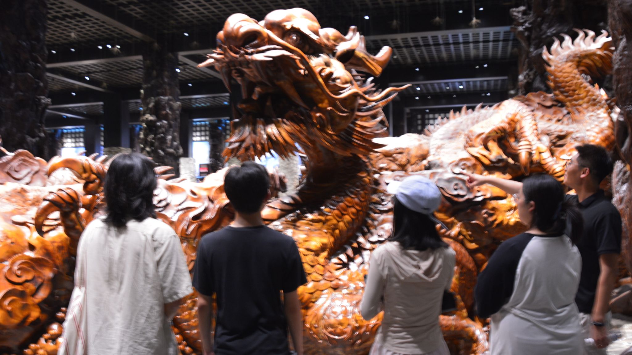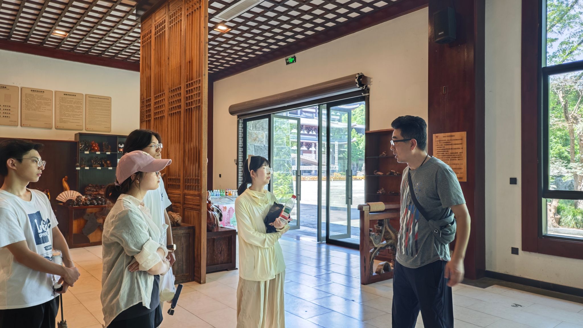 实践首日,团队抵达根宫佛国。在专业讲解员的带领下,队员们开启了参观之旅,近距离欣赏了各类根雕珍品,认真聆听根雕的历史渊源、选材特点和工艺流程,对开化根雕这一文化瑰宝形成了直观而深刻的初步认识。