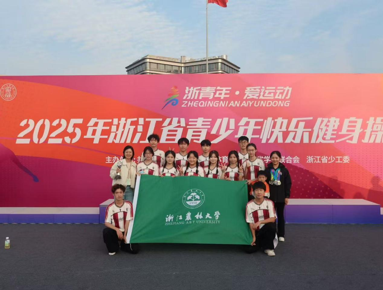 11月2日,“浙青年·爱运动”2025年浙江省青少年快乐健身操大赛决赛在浙江音乐学院举行。经过激烈角逐,浙江农林大学荣获亚军,陈静怡、路卓怡同学获“优秀运动员”称号,指导老师顾静霞获“优秀教练员”称号。