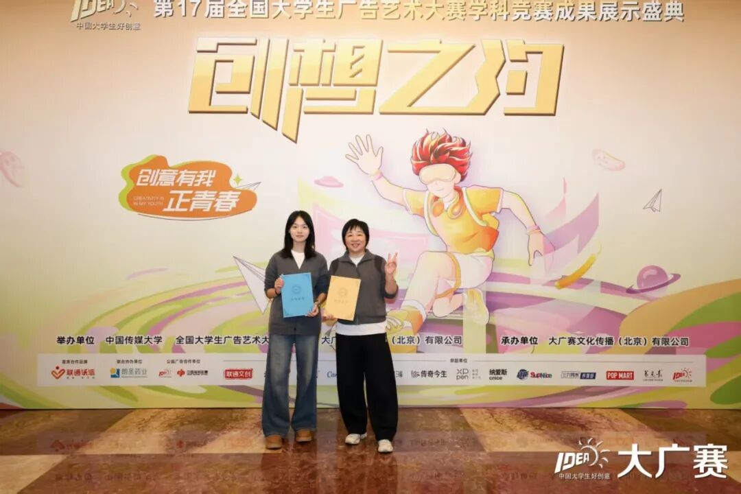 12月6日,第17届全国大学生广告艺术大赛学科竞赛成果展示盛典于北京全国政协礼堂举行。我校广告学专业姚彦如同学的作品《自在生活,勇敢追梦》(指导教师:程向明)获全国二等奖。当日,师生赴京领奖。
