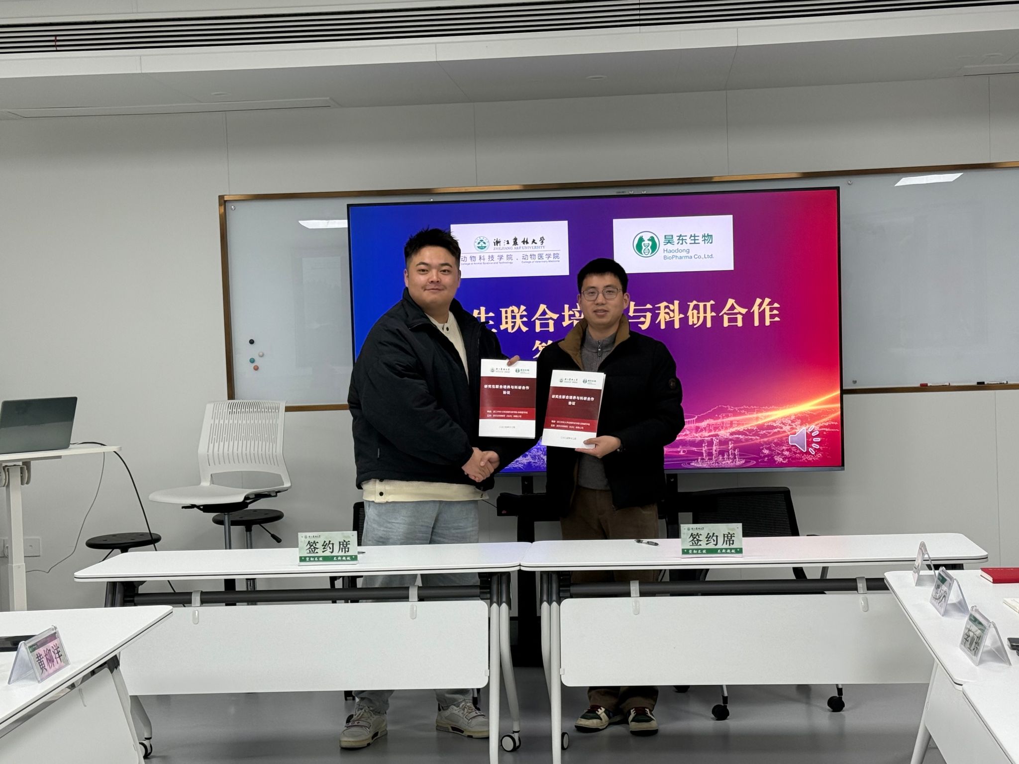 仪式上,双方代表签署了《联合培养与科研协作协议》,今后双方将围绕宠物疾病防控相关检测技术、生物医药应用研究等方向,在学校研究生培养管理制度基础上,依托科研项目开展研究生联合培养与科研协作,探索校企协同育人的有效模式,持续提升研究生培养质量与科研创新能力。