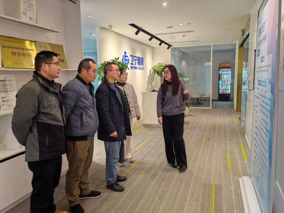 上午来到卫宁健康科技集团股份有限公司,卫宁健康杭州研发中心总经理汪军、浙江大区销售副总梁巍、售前咨询总部浙江负责人金兆波热情接待。座谈会上,金兆波等就公司概况、发展历程、公司文化、2026届校园招聘计划等情况做了详细介绍。数计学院相关负责人对公司的热情接待表示感谢,介绍了学院历史、学科专业、科技创新、产业学院等方面的情况,并表示人才是创新和发展的核心资源,希望进一步深化校企合作,在人才培养、实习实践、就业招聘等方面持续发力,为学院学生提供实习机会和就业岗位,实现资源共享、优势互补、互利共赢,形成稳定的人才输送链。