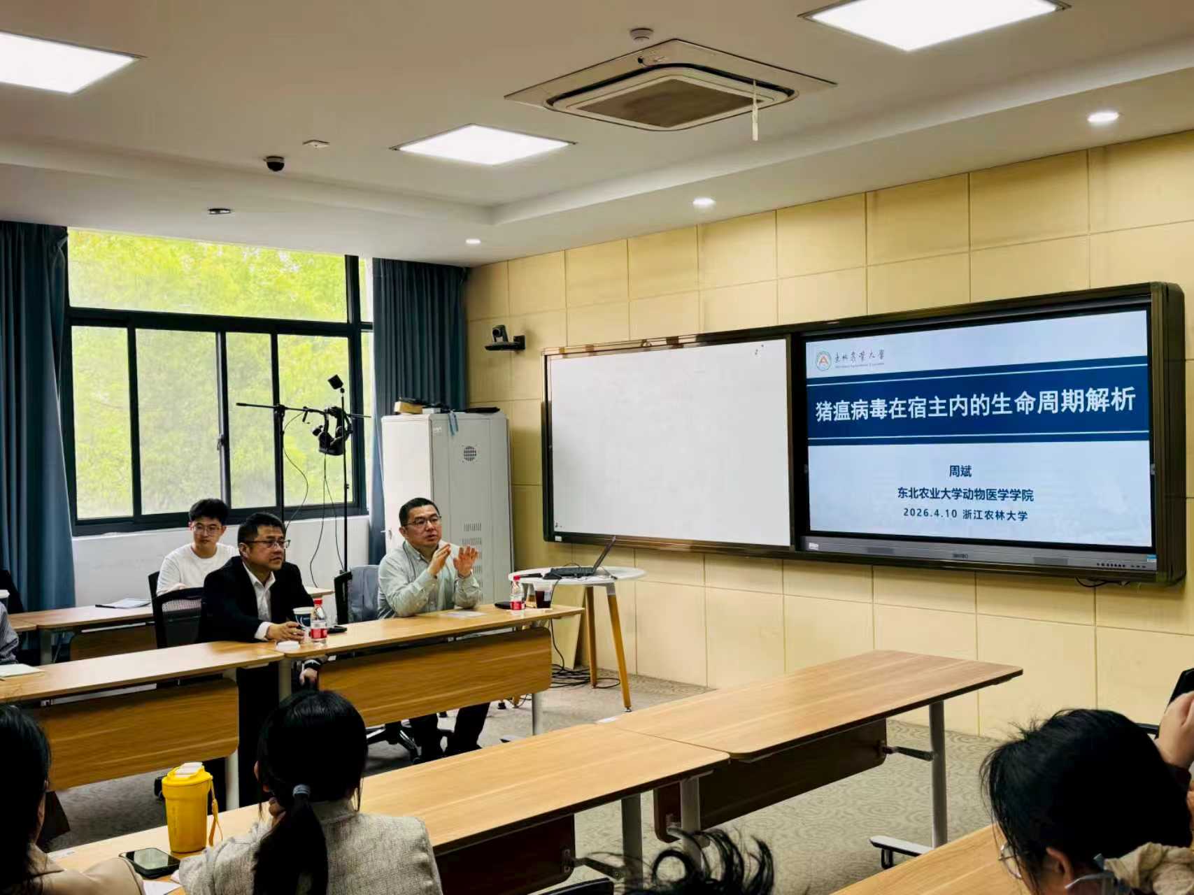 周斌教授长期从事猪重要疫病发病机制与防控技术研究,整场报告内容详实、深入浅出,现场师生交流踊跃、反响热烈,不仅进一步加深了大家对动物病毒生命周期的认知,也为学院科研工作拓展了思路、注入了新活力。
