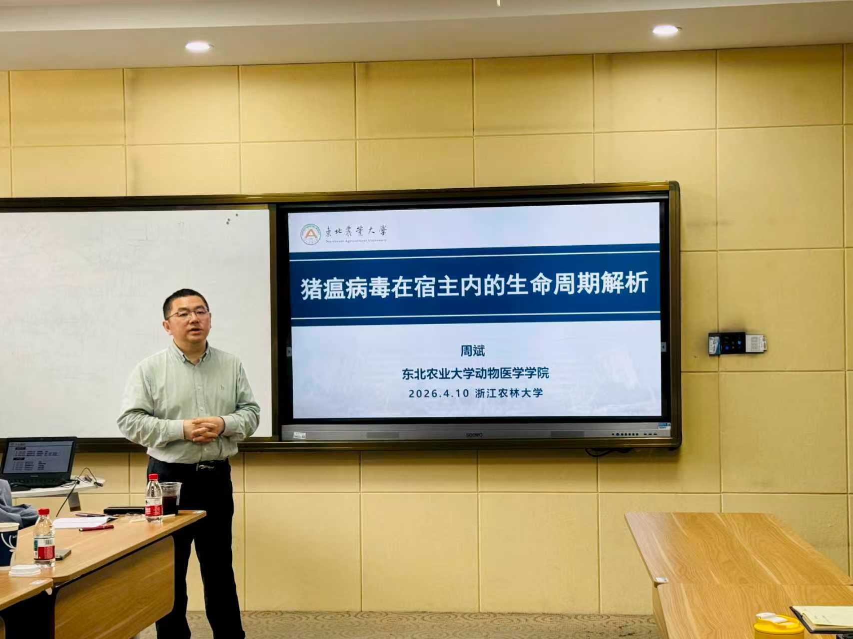 4月10日,教育部长江学者奖励计划特聘教授、东北农业大学周斌教授应邀来动科动医学院进行学术交流活动,学院师生代表参加交流研讨。