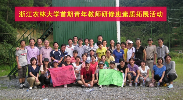 浙农林大新闻网讯 7月1日,首期青年教师研修班学员共40余人在临安碧雪湖户外拓训基地,开展了为期一天的素质拓展活动。
