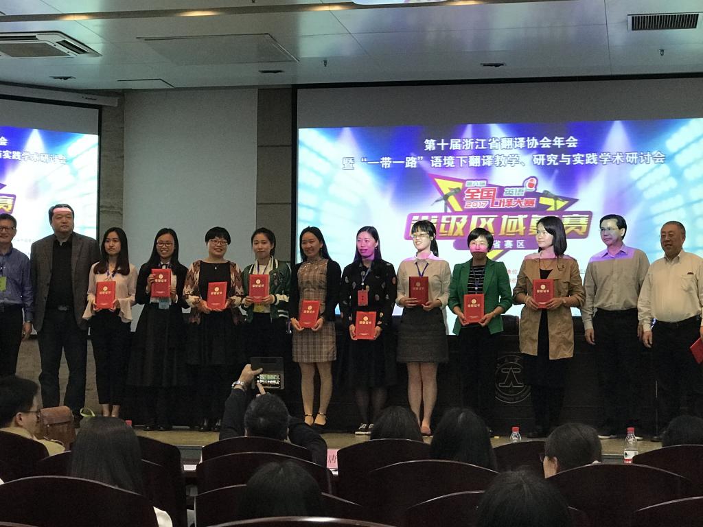 4月15日,2017年浙江省“LSCAT”杯翻译大赛(笔译)在浙江工业大学成功落幕,共有1000余名选手参加比赛。经过专家评委会评阅,我校学子取得英译汉一等奖3名、二等奖6名,汉译英一等奖1名,二等奖4名的好成绩,充分展现了学生扎实的语言基本功和过硬的翻译能力。