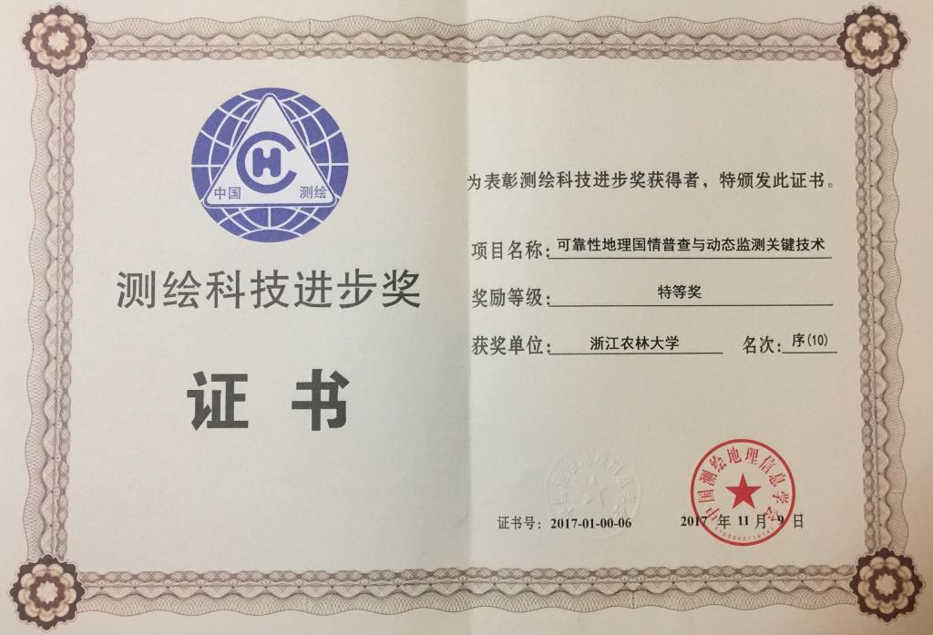 我校测绘专业教师邓愫愫博士作为“可靠性地理国情普查与动态监测关键技术”项目成员,荣获测绘科技进步奖特等奖。该项目参与单位有香港理工大学、武汉大学、中国矿业大学、浙江农林大学等多家高校科研院所,项目成果在当代测绘地理信息科学前沿技术取得重大突破,创造了经济效益和社会效益,对我国测绘行业的发展具有重要影响。
