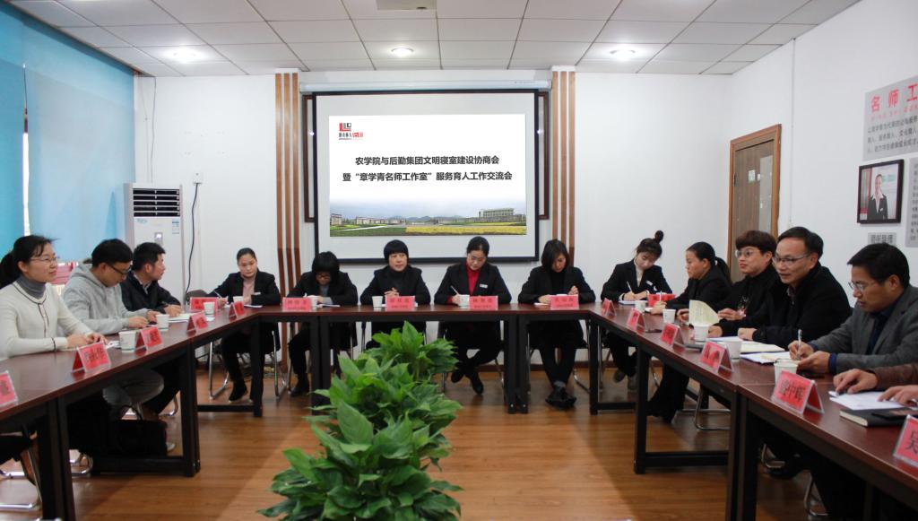 12月6日,后勤集团召开文明寝室建设协商会暨“章学青名师工作室”服务育人工作交流会,首次与学院开展交流合作,共同营造良好育人环境,全面落实“三全育人”工作。会议特邀农学院相关负责人,辅导员及学生代表出席,集团党总支书记许树洪及公寓管理部相关人员参加。