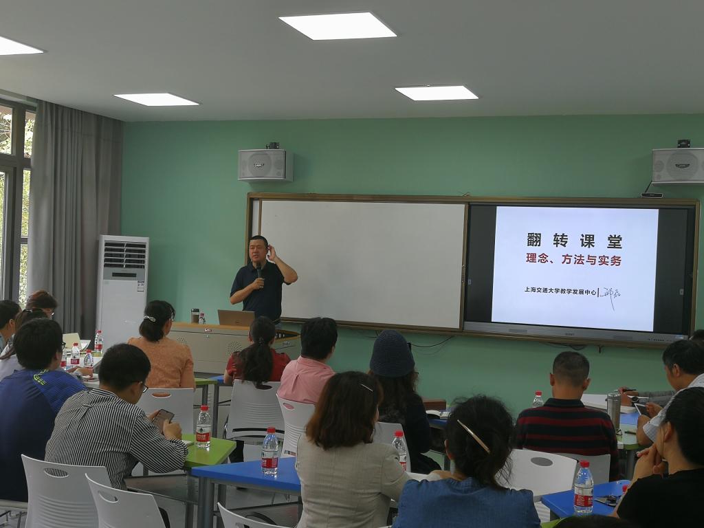 9月26日,学校邀请上海交通大学教师教学发展中心邢磊博士,为我校承担混合式课堂教学改革项目的老师作主题工作坊,工作坊围绕《翻转课堂:示例、剖析与展望》主题展开。
