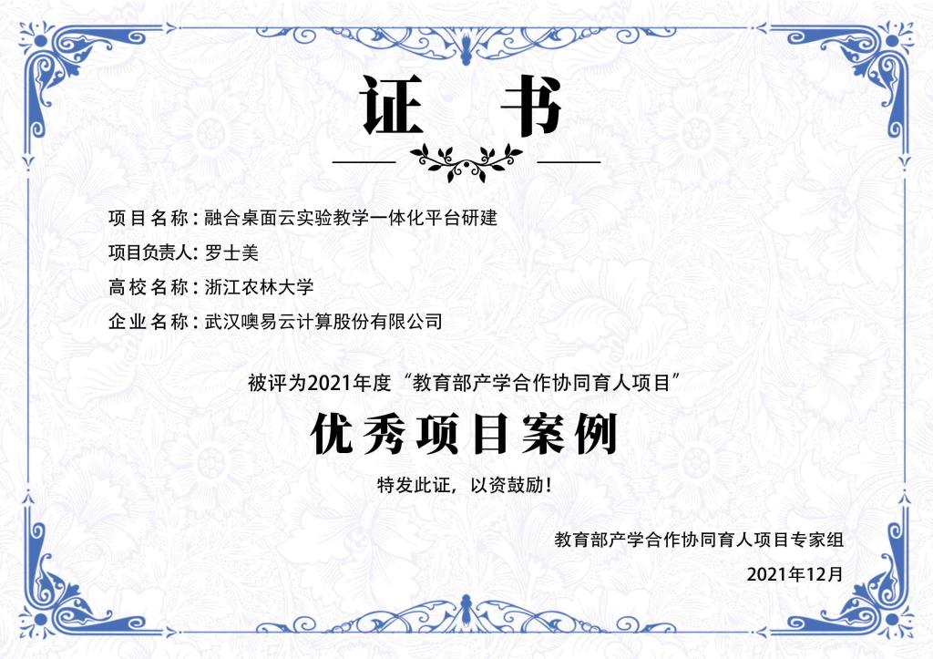 12月8日,从教育部产学合作协同育人官网获悉,由我校经济管理学院罗士美老师主持的“融合桌面云实验教学一体化平台研建”教育部产学合作协同育人项目,被评为2021年度优秀项目案例。