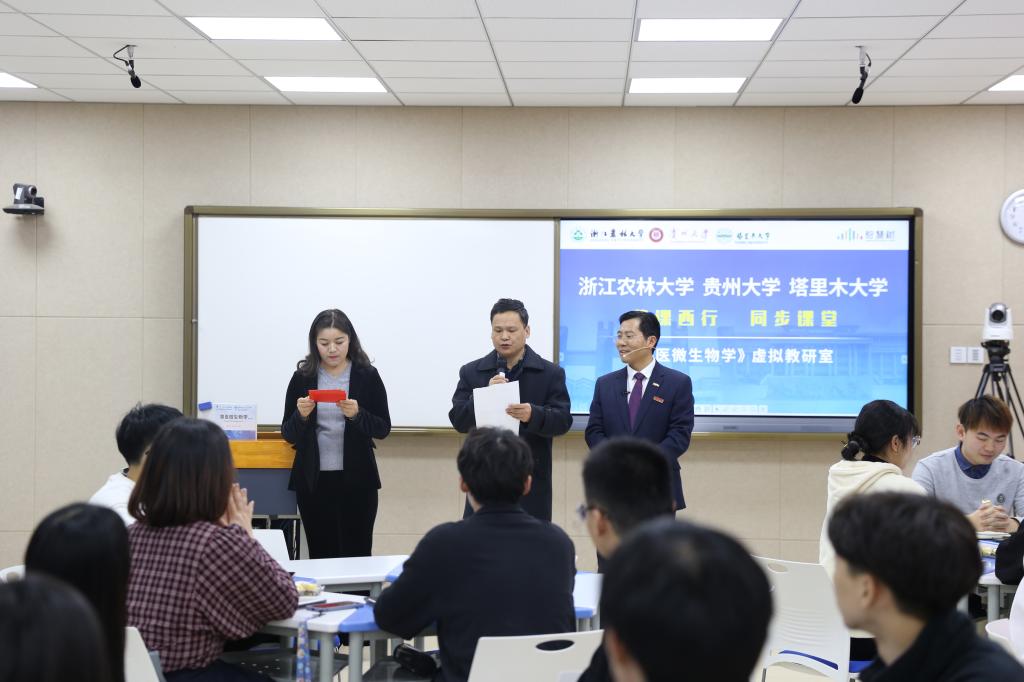 我校教务处处长郭建忠教授、塔里木大学和贵州大学有关领导以及三所高校教育部动物医学类专业教指委委员等参加了直播开幕式。
