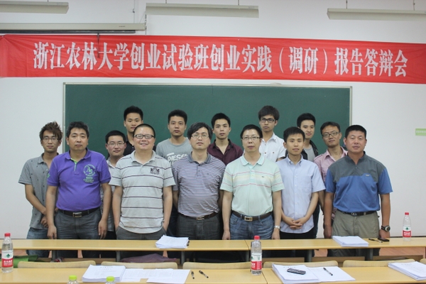 首届创业试验班于2010年9月面向全校2008级本科生招生30人,参加本次创业实践(调研)报告答辩的一共有8名同学。根据《浙江农林大学创业教育试验班培养方案》相关政策,创业试验班学生可选择参加创业实践(调研)报告或所在学院的毕业论文(设计),两者可进行学分互认。