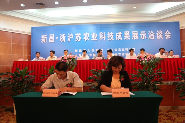 在项目成果展示会上,专家们对我校在农业、林业等方面的科技成果进行了充分展示,累计发放科技成果汇编达1000余份,意向合作企业达20余家,并与丰岛控股集团有限公司、宁波果乐农业开发有限公司等5家企业达成了共建科研教学合作基地初步协议。