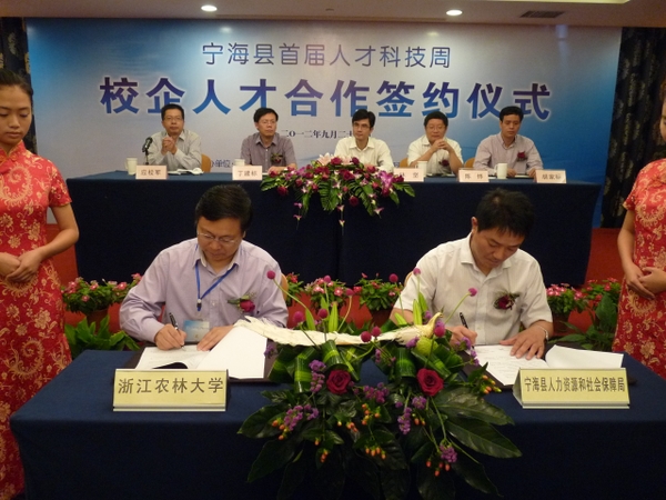 浙农林大新闻网讯 为推进我校研究生就业创业工作,建立研究生就业创业平台,同时进一步畅通宁海县高层次人才引进渠道,9月23日,研究生处处长童再康带领相关工作人员参加宁海县首届人才科技周,与宁海县人力社保局签订“共建研究生工作站协议”。