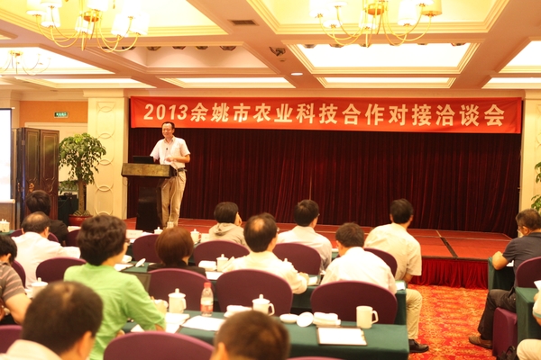 浙农林大新闻网讯 6月5日至6日,2013年余姚市农业科技合作对接洽谈活动在余姚召开,我校社会合作处组织农业、林业、加工、畜牧等相关专家参加了此次活动。余姚市乡镇(街道)、农业企业(合作社、家庭农场、种养殖大户)、农技推广部门等200余人参加了会议。