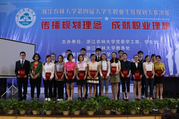 浙农林大新闻网讯 9月22日下午,校第四届大学生职业生涯规划大赛决赛在东湖校区图书馆第一报告厅举行。本次大赛由学生处和教务处主办,经济管理学院承办,并得到了浙江联誉实业有限公司大力支持。校党委学工部部长、学生处处长缪鲁加、保卫处处长马小辉、浙江大学人事处副处长朱慧、浙江经贸职业技术学院招生办主任姚华儿以及教务处、各二级学院相关负责人出席活动。