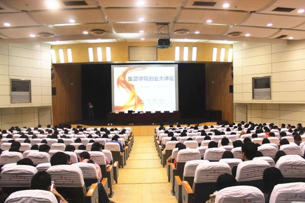3月19日下午,集贤学院创业大讲坛在图书馆第一报告厅开讲。讲座由集贤学院执行院长张有做主持。国际教育和创业中心创始人兼科技基金投资人濮阳青、校资产经营公司总经理陈小华主讲。集贤学院及各学院学生代表400余人参加了此次讲座。