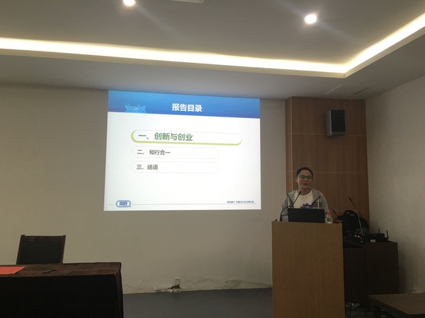 郑展望作了题为“知行合一”的报告。他阐述了创新与创业的关系,梳理了环保产业的现有布局,重点介绍了新形势下农村智慧治水新模式应用于农村污水治理的情况。郑展望通过自身的创业实例鼓励同学们知行合一,求学期间在心中埋下创新创业的种子,毕业后运用所学知识回馈社会。