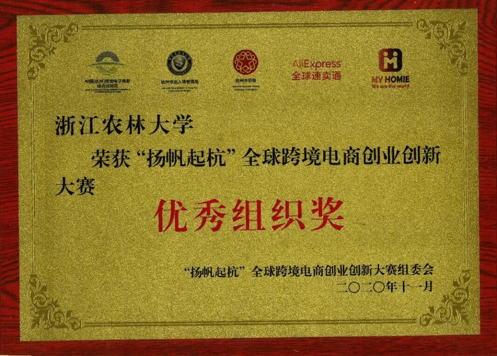 近日,由中国(杭州)跨境电商综合试验区、浙江省商务厅为指导单位,杭州市出入境管理局、阿里巴巴全球跨境电商教育联盟、浙江省高教学会外国留学生教育管理专业委员会、中国(杭州)跨境电商人才联盟等单位主办的“扬帆起航”全球跨境电商创新创业大赛颁奖仪式在杭州举行,我校荣获大赛“优秀组织奖”。