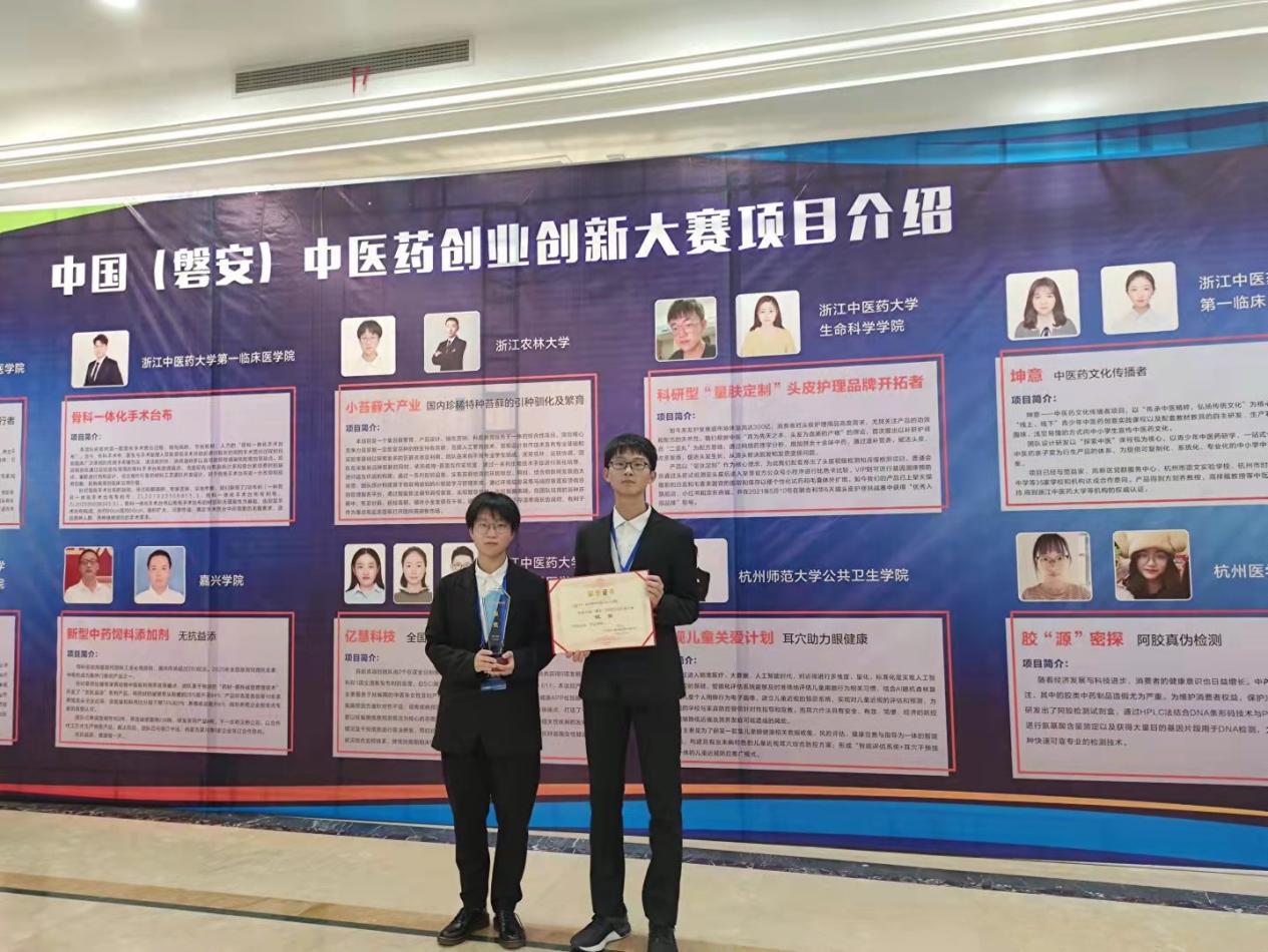 中国(磐安)中医药创业创新大赛共吸引来自长春、杭州、嘉兴、金华、台州等地60多个高校团队报名参赛,项目涵盖现代微生物技术、中药质量检测、康养服务等多个领域。经过初赛角逐,我校与浙江中医药大学、长春中医药大学等10所高校的20个团队进入决赛。决赛中,各团队通过项目展示陈述和评审答辩等环节,充分展现了青年创新创业风采,经过严格评审,大赛最终决出特金奖2名、金奖4名、银奖6名、铜奖8名。