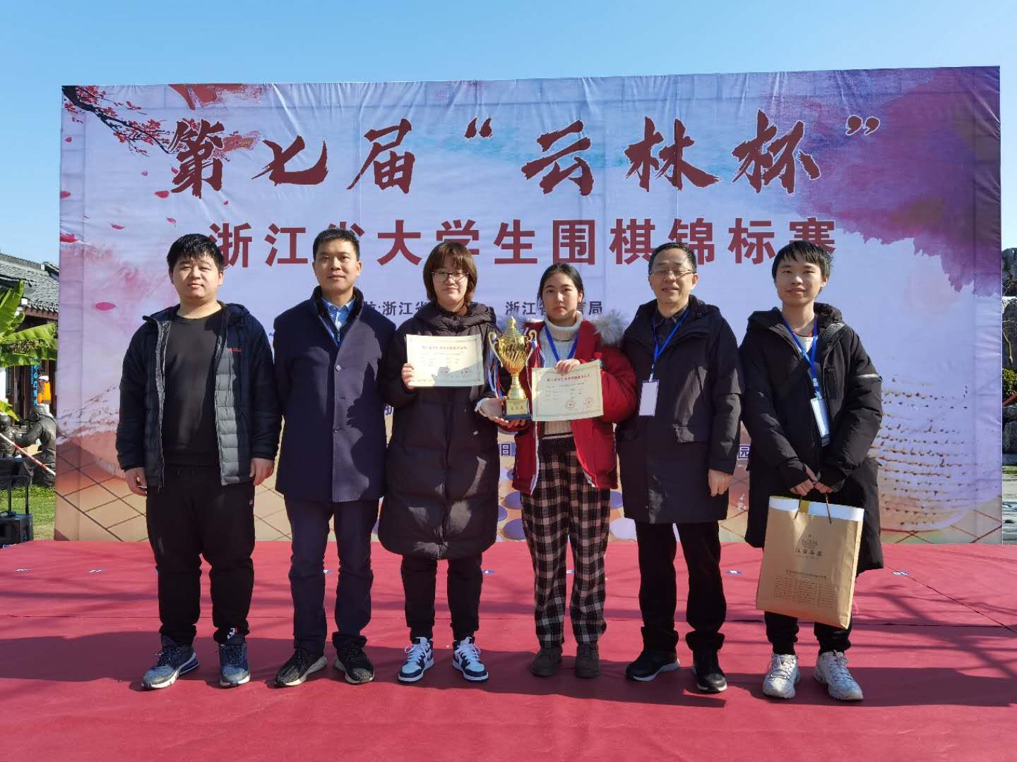 日前,在校团委、校工会和信息工程学院的大力支持下,我校师生联队经过两天的激烈鏖战,荣获第七届云林杯浙江省大学生围棋锦标赛团体第七名。本届云林杯共有19支队伍参赛,男子组73人,女子组30人,云集了省内各高校围棋爱好者。