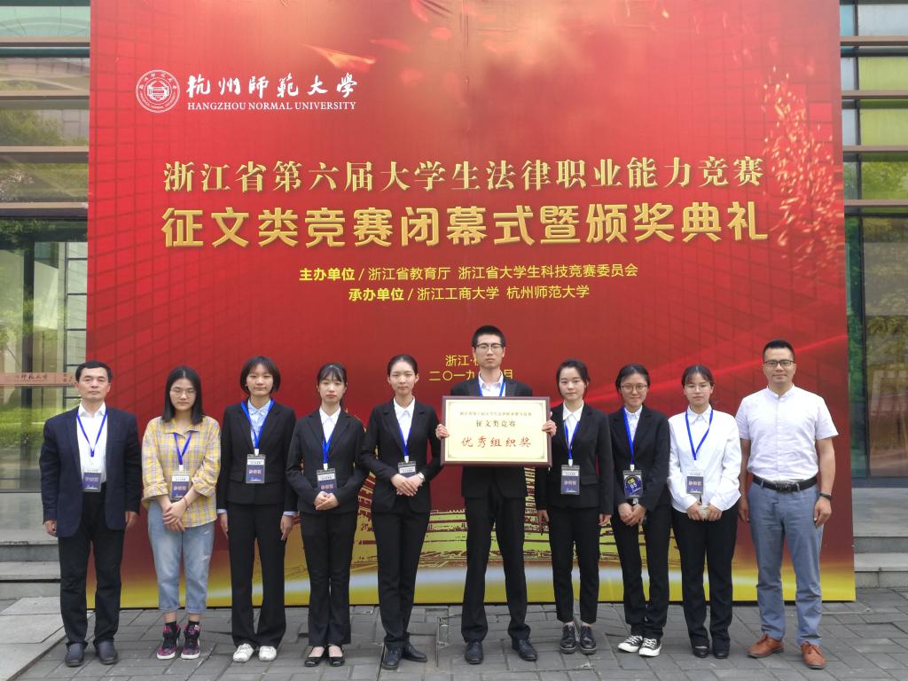 5月11日,2019年浙江省第六届大学生法律职业能力竞赛法律征文类竞赛在杭州师范大学落幕。我校法学学生荣获一等奖2项、二等奖5项、三等奖8项,并荣获“优秀组织奖”。