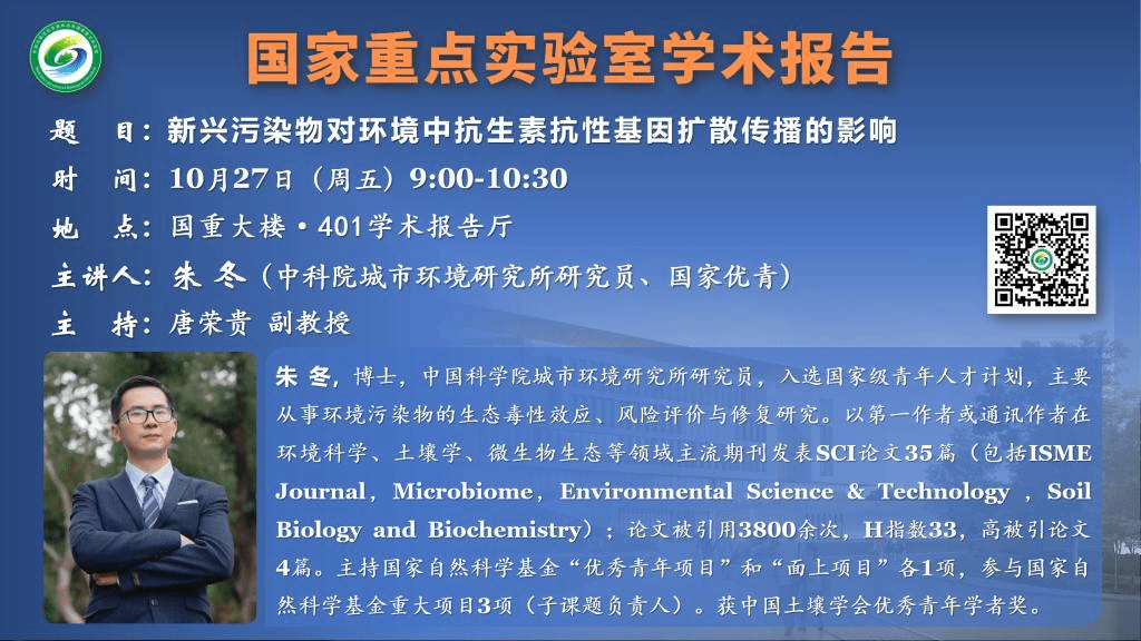 讲座预告:新兴污染物对环境中抗生素抗性基因扩散传播的影响