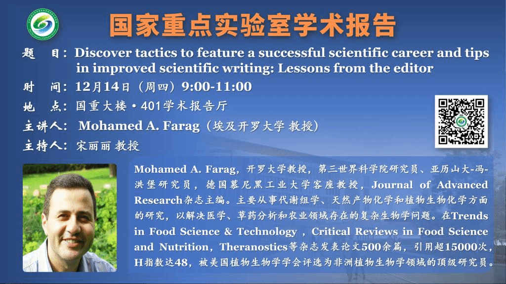 讲座预告:Discover tactics to feature a successful scientific career and tips in improved scientific writing: Lessons from the editor