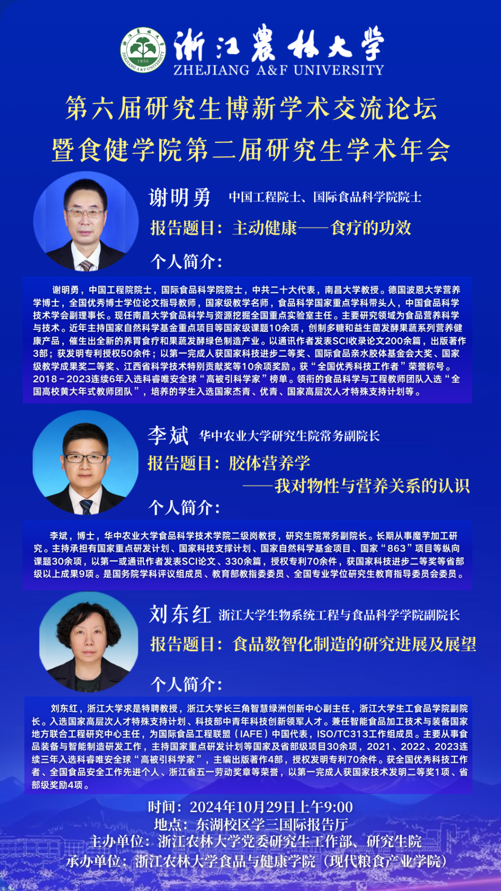 讲座预告:第六届研究生博新学术交流论坛暨食健学院第二届研究生学术年会