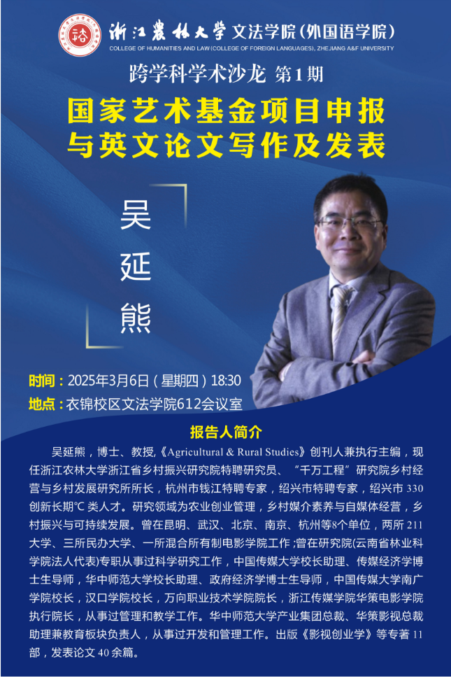 讲座预告:国家艺术基金项目申报与英文论文写作及发表