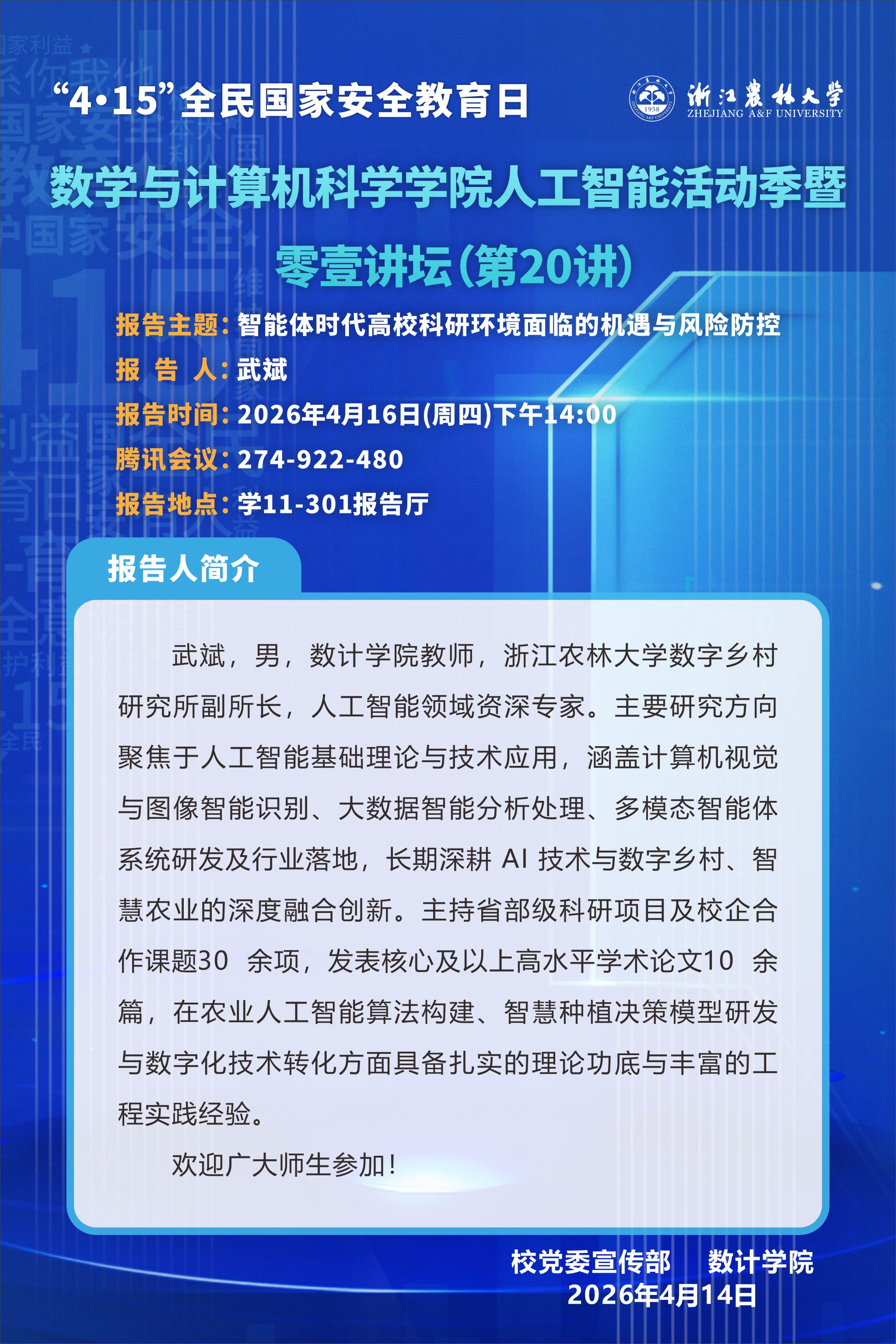 讲座预告:“4·15”全民国家安全教育日-浙江农林大学数学与计算机科学学院人工智能活动季暨零壹讲坛(第20讲)